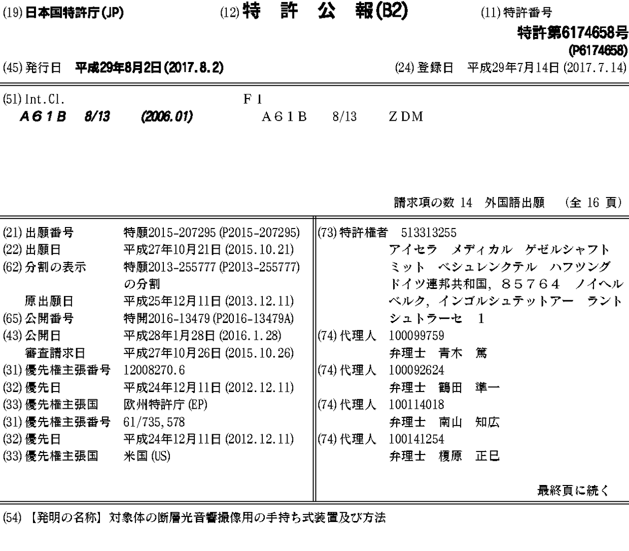 CN103860140A | CN103860140B | EP2742854A1 | JP2014113497A | JP2016013479A | JP6174658B2 | US20140221810A1