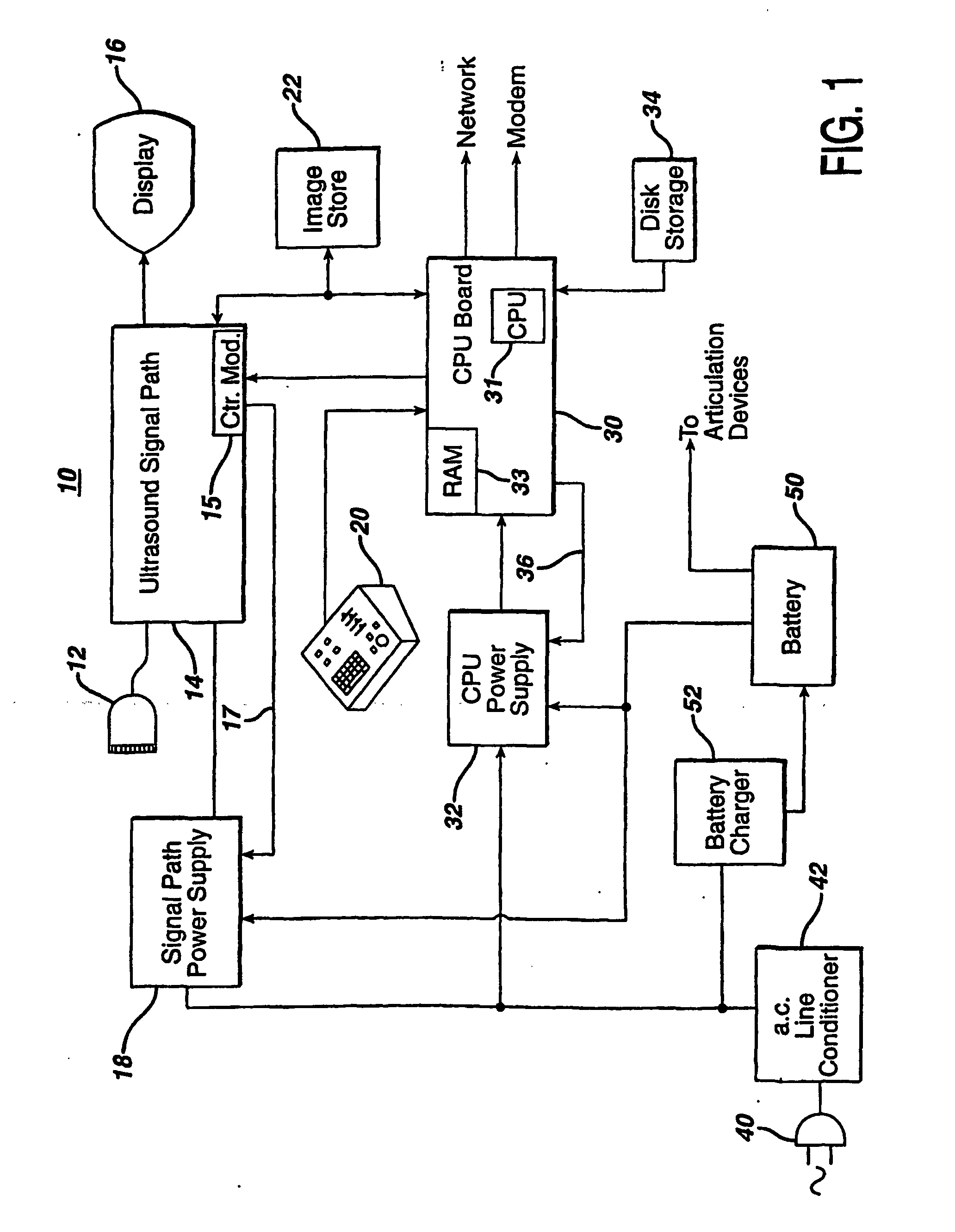 Portable ultrasound system with battery backup for efficient shutdown and restart