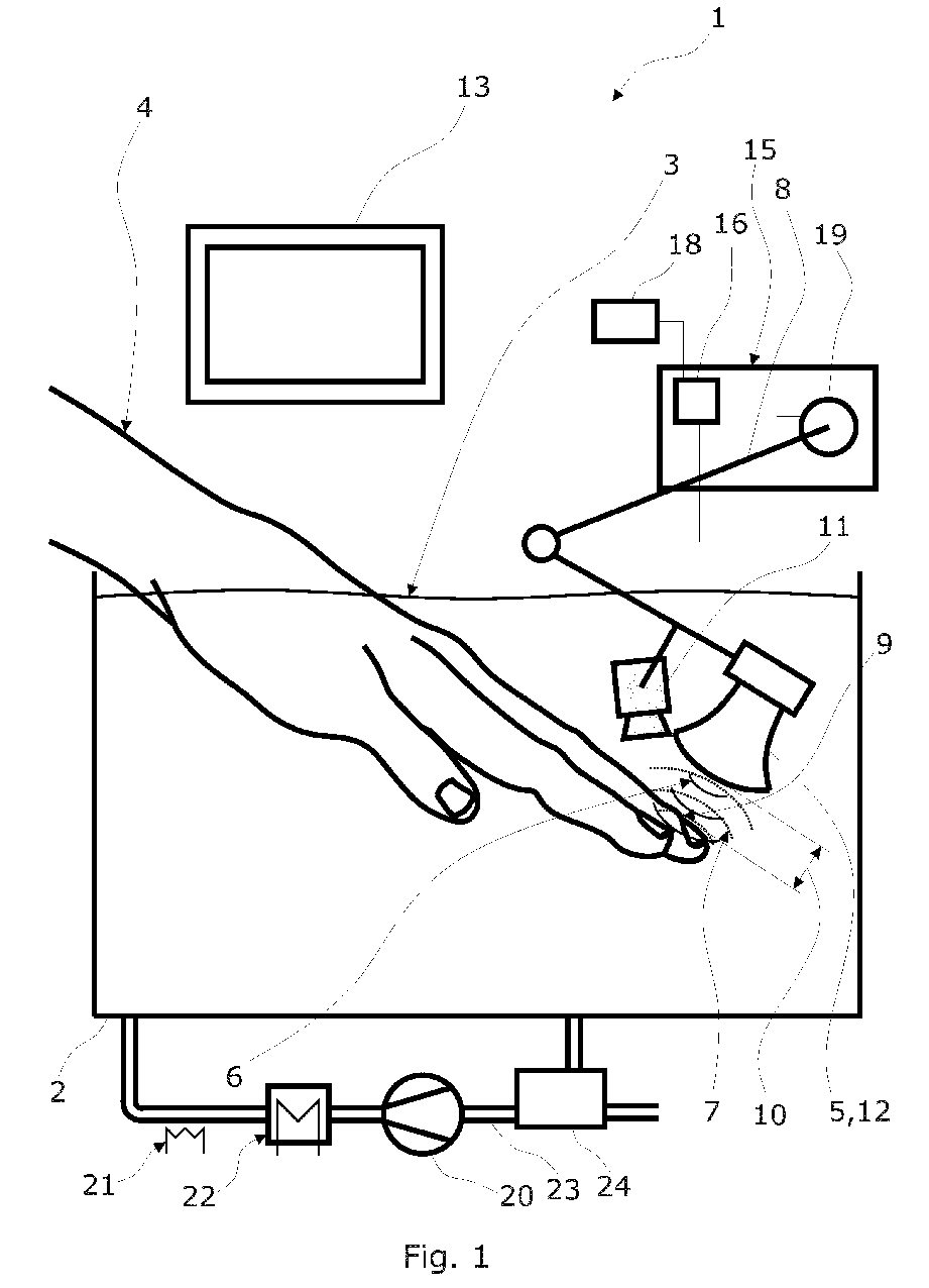 Apparatus for suspended ultrasonography and corresponding method