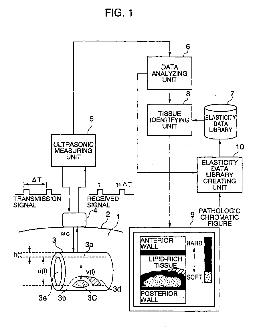 Tissue identifying method in ultrasonography and ultrasonograph