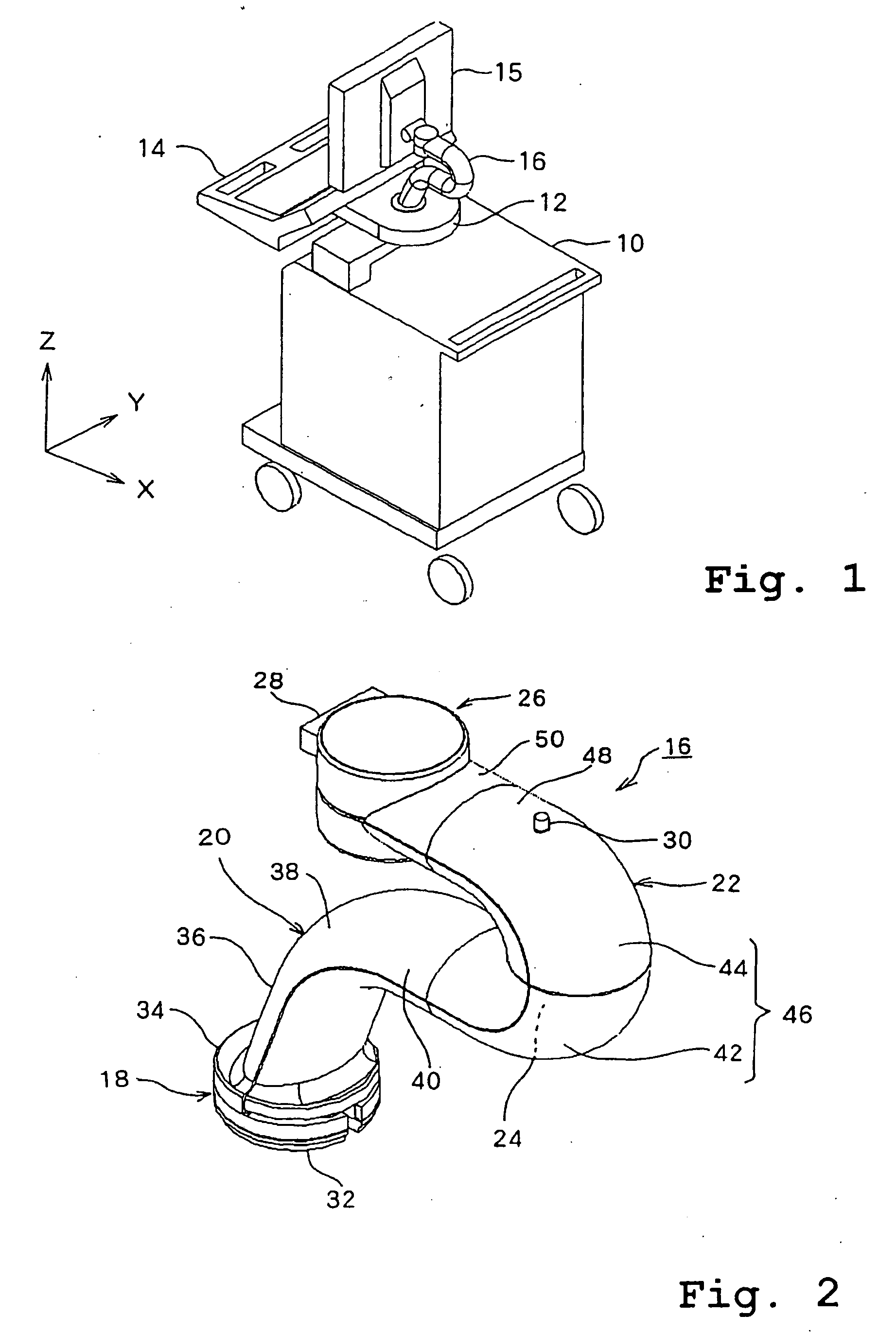 Ultrasound diagnosis apparatus with curved support arm for display