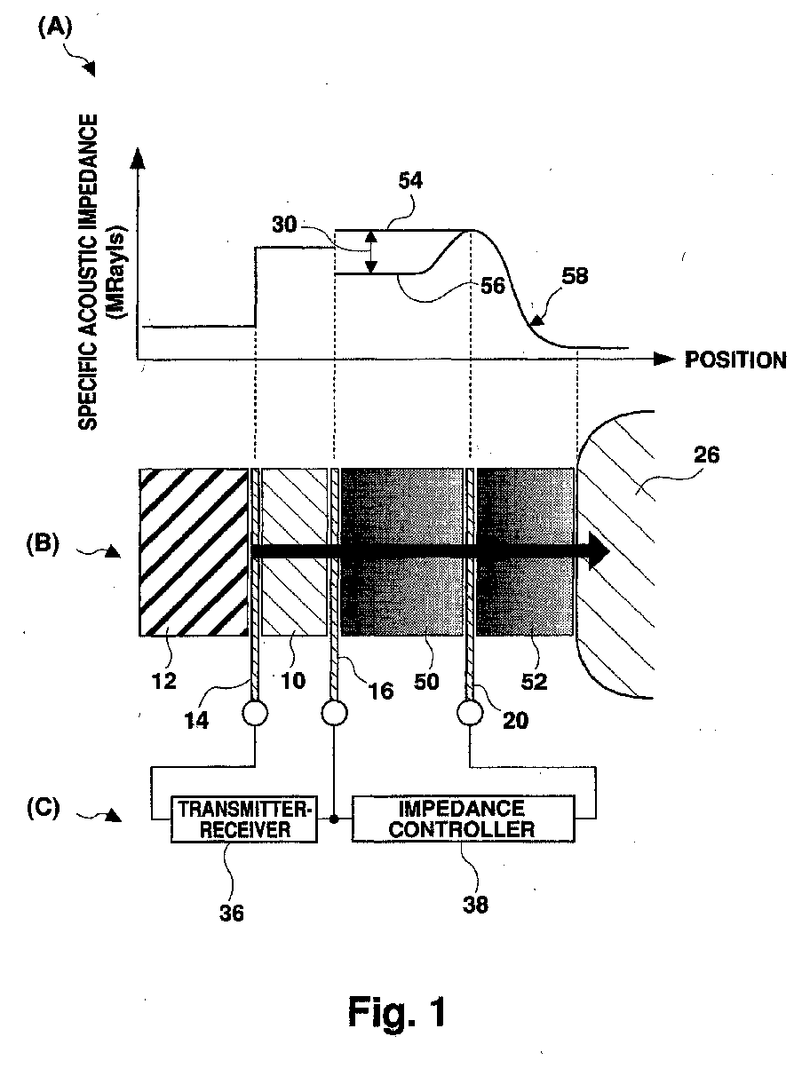 Ultrasonic probe containing an element for controlling the sonic speed