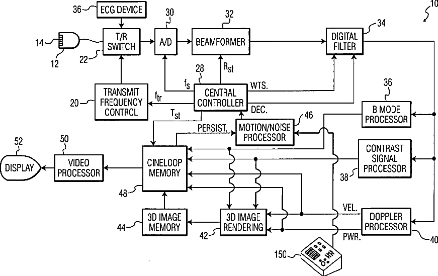 Ultrasonic diagnostic imaging system with automatic control of penetration, resolution and frame rate