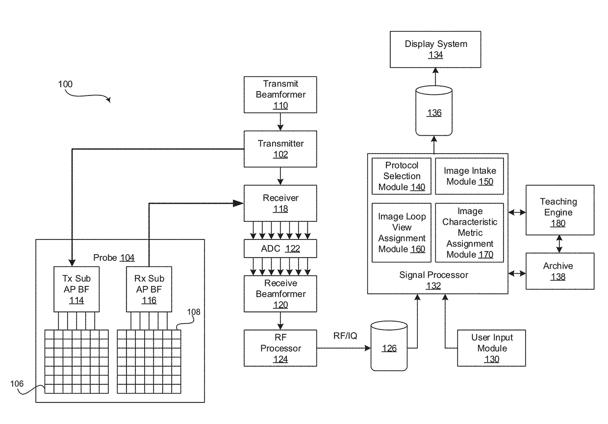 Method and system for automatically selecting ultrasound image loops from a continuously captured stress echocardiogram based on assigned image view types and image characteristic metrics