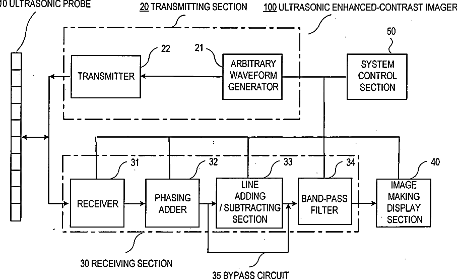 Ultrasonic enhanced-contrast imager and method