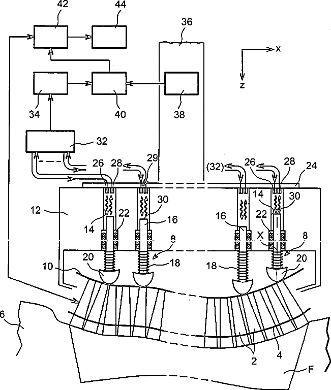 Ultrasonic contact transducer with multiple emitting elements and means of bringing these elements into contact