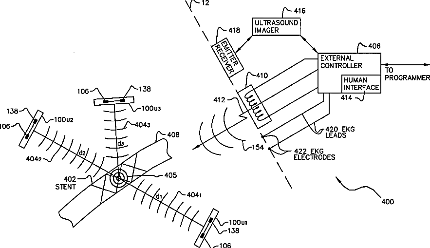 System of implantable ultrasonic emitters for preventing restenosis following a stent procedure