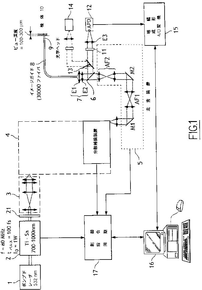 検体のファイバ式マルチフォトン式顕微鏡イメージング装置および方法