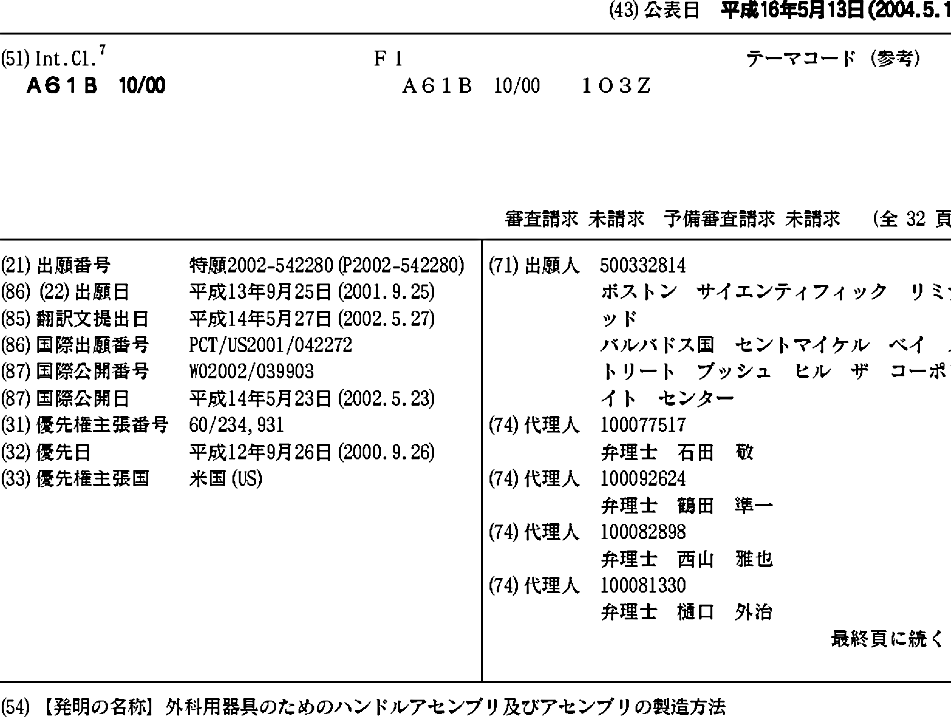 AU2002339236A1 | CA2392715A1 | EP1399069A2 | JP2004513701A | JP4842500B2 | US20020038119A1 | US6743185 | WO2002039903A2 | WO2002039903A3