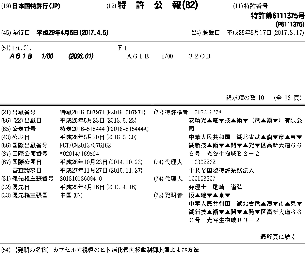 CN103222842A | CN103222842B | DK2987447T3 | DK2995240T3 | EP2987447A1 | EP2987447A4 | EP2987447B1 | ES2738551T3 | ES2758701T3 | HRP20192236T1 | HUE047187T2 | JP2016515444A | JP6111375B2 | LT2987447T | LT2995240T | SI2987447T1 | US10076234 | US20150018614A1 | US20150018615A1 | US9986898 | WO2014169504A1