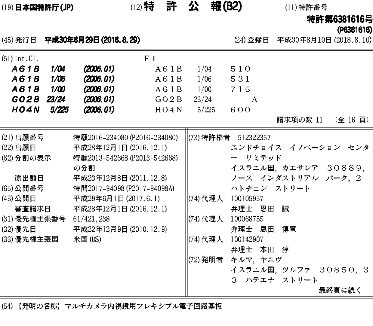 マルチカメラ内視鏡用フレキシブル電子回路基板
