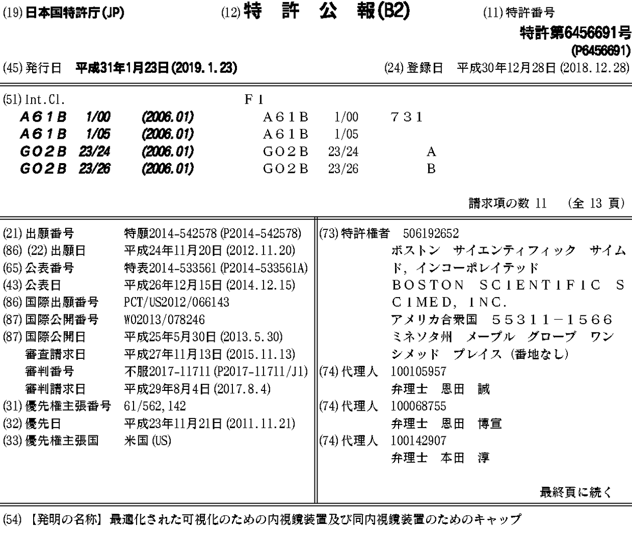 CA2855703A1 | EP2782491A1 | EP2782491B1 | EP3517018A1 | JP2014533561A | JP2014533561A5 | JP2017200621A | JP6456691B2 | US20130131447A1 | US20190142248A1 | WO2013078246A1