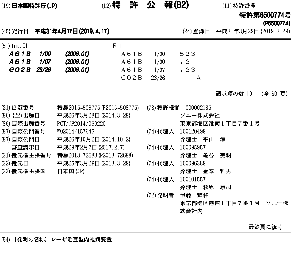 CN105050475A | CN105050475B | JP6500774B2 | JPWO2014157645A1 | US20160299170A1 | WO2014157645A1