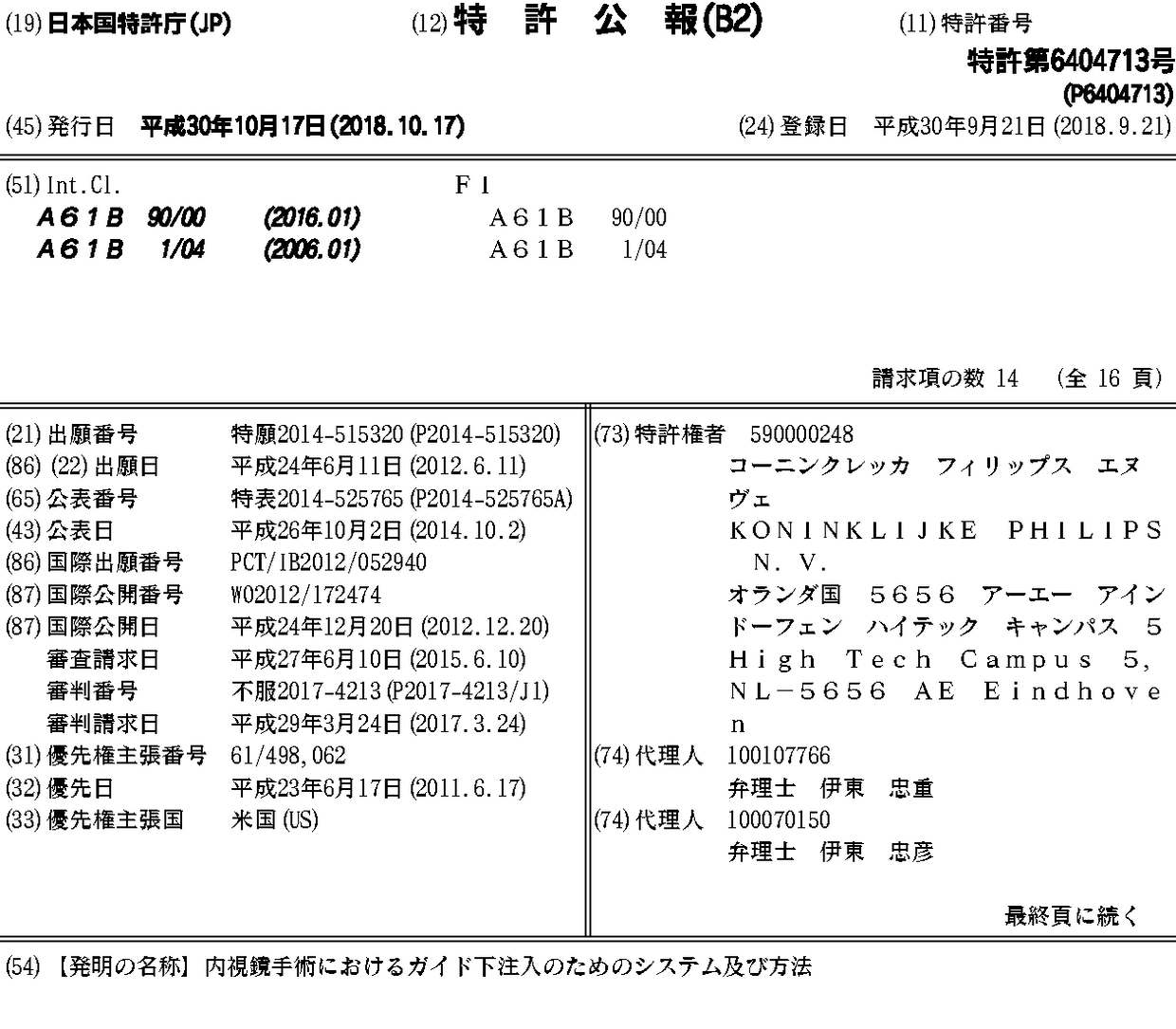 CN103619278A | CN103619278B | EP2720636A1 | EP2720636B1 | EP2720636B8 | JP2014525765A | JP6404713B2 | US20140142422A1 | WO2012172474A1