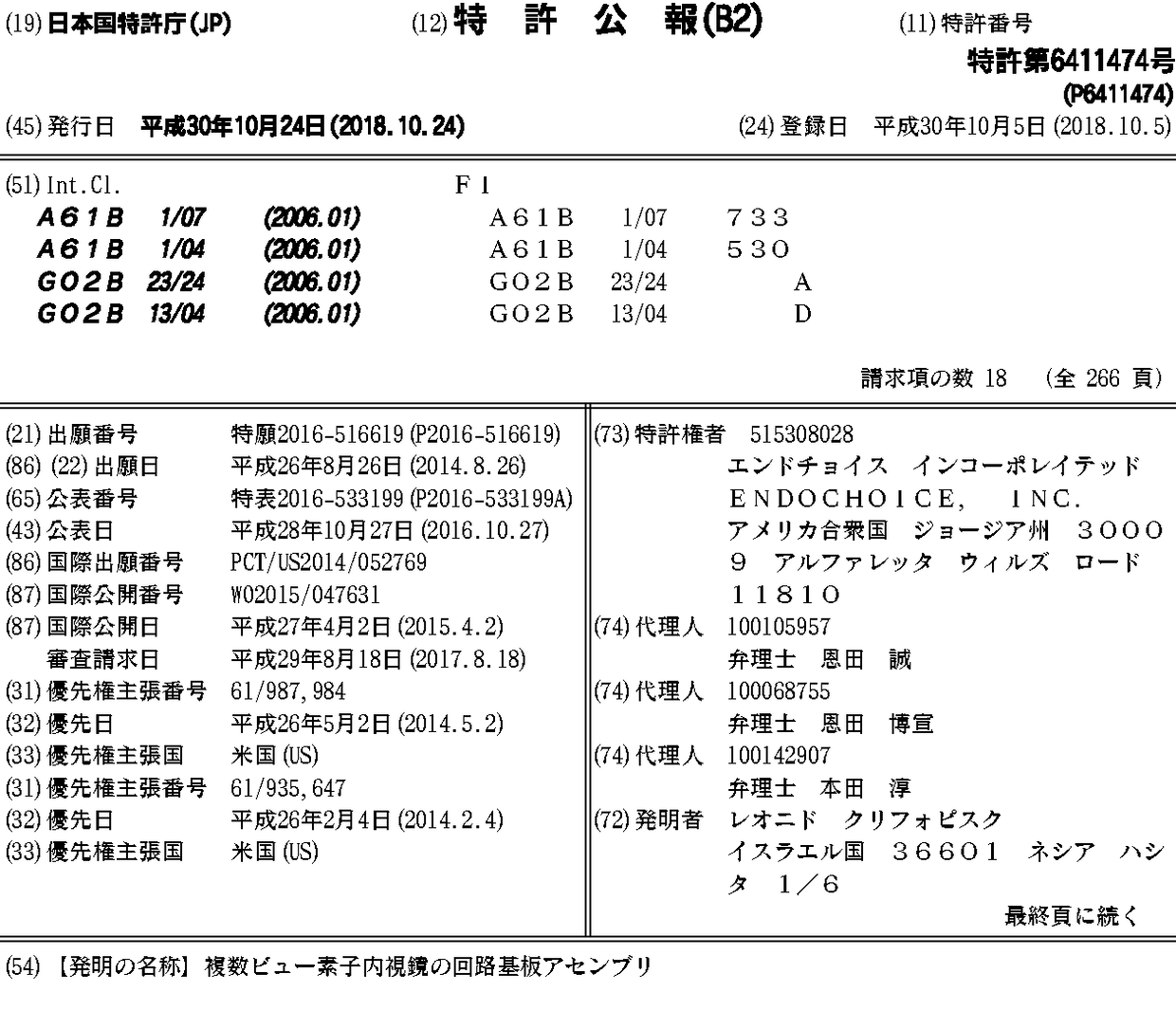 CN105592770A | EP3048946A1 | EP3048946A4 | EP3048946B1 | JP2016533199A | JP2019022700A | JP6411474B2 | JP6585796B2 | WO2015047631A1