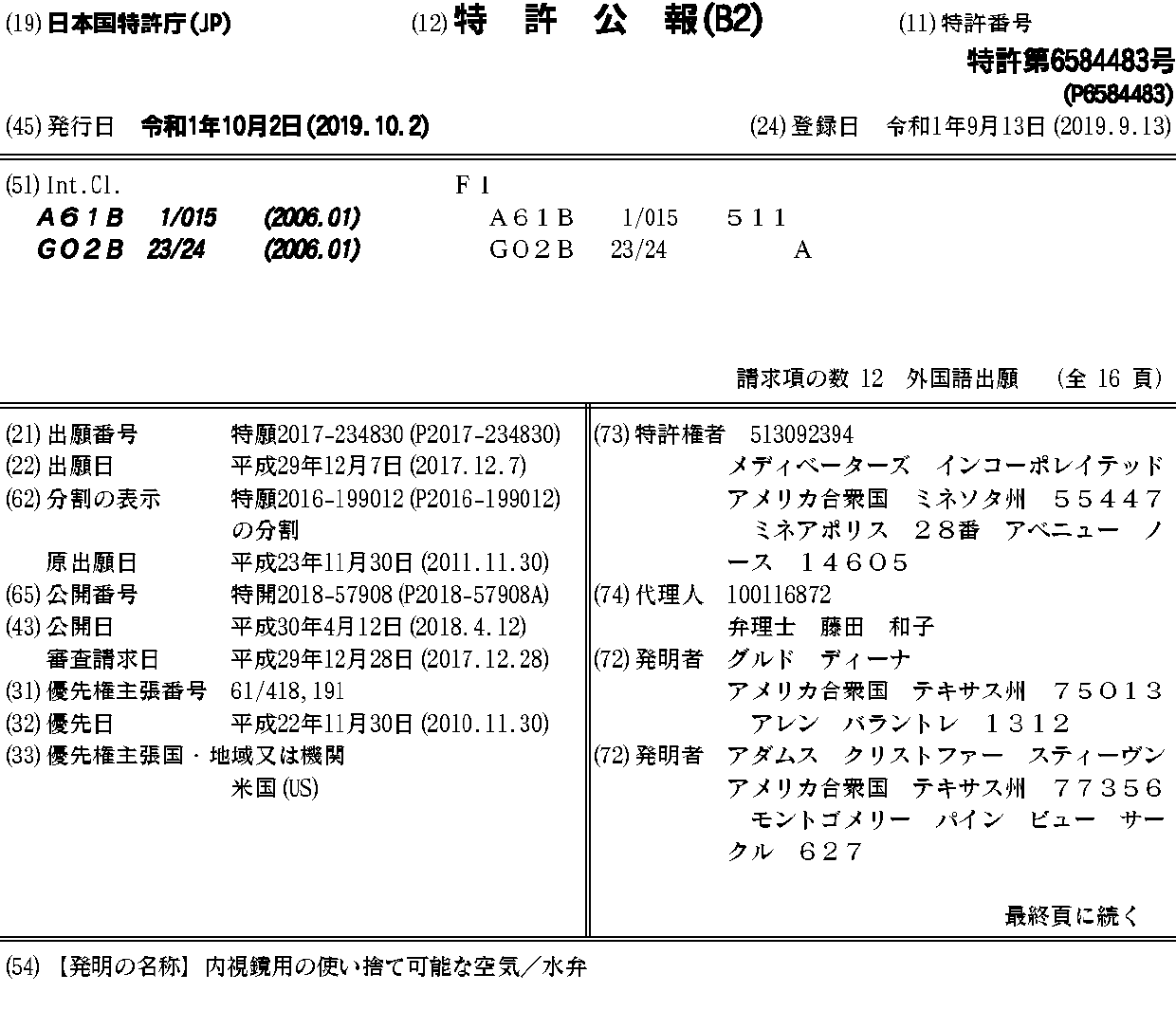 AU2011336623A1 | AU2011336623B2 | AU2016203776A1 | AU2016203776B2 | AU2017228665A1 | AU2017228665B2 | CA2818985A1 | CA2818985C | EP2645920A1 | EP2645920A4 | JP2013545555A | JP2017023796A | JP2018057908A | JP6259041B2 | JP6584483B2 | US20130303844A1 | US20160309987A1 | US9408523 | WO2012075131A1