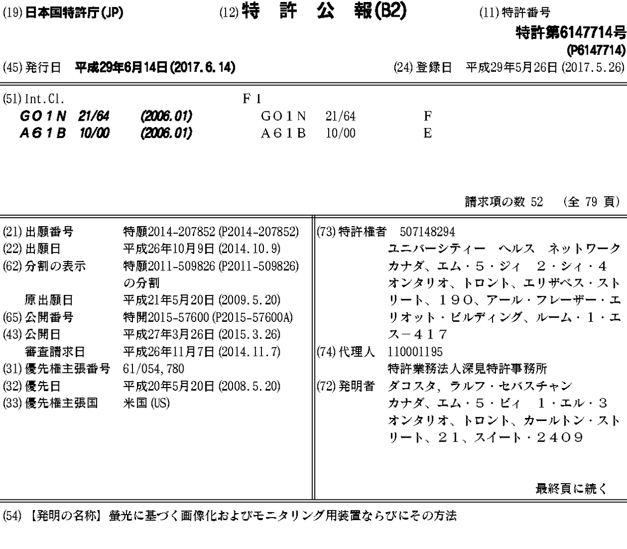 CA2724973A1 | CA2724973C | CA2891990A1 | CN102099671A | CN104939806A | DK2291640T3 | EP2291640A1 | EP2291640A4 | EP2291640B1 | EP3501384A2 | EP3501384A3 | ES2715633T3 | JP2011521237A | JP2015057600A | JP2017189626A | JP2019188162A | JP6147714B2 | JP6535364B2 | PL2291640T3 | PT2291640T | TR201901658T4 | US20110117025A1 | US20160045114A1 | US20180242848A1 | US20180325377A1 | US9042967 | WO2009140757A1
