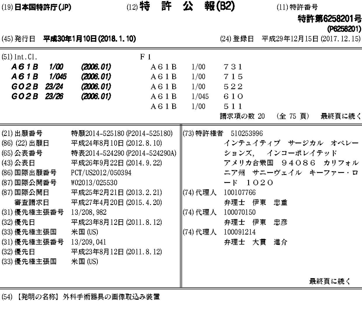 CN103889353A | CN103889353B | CN107913053A | EP2741702A1 | EP2741702A4 | JP2014524290A | JP2017148657A | JP2019072557A | JP6258201B2 | JP6480508B2 | KR101971211B1 | KR1020140050712A | KR1020190047066A | KR1020200019779A | KR102079689B1 | WO2013025530A1