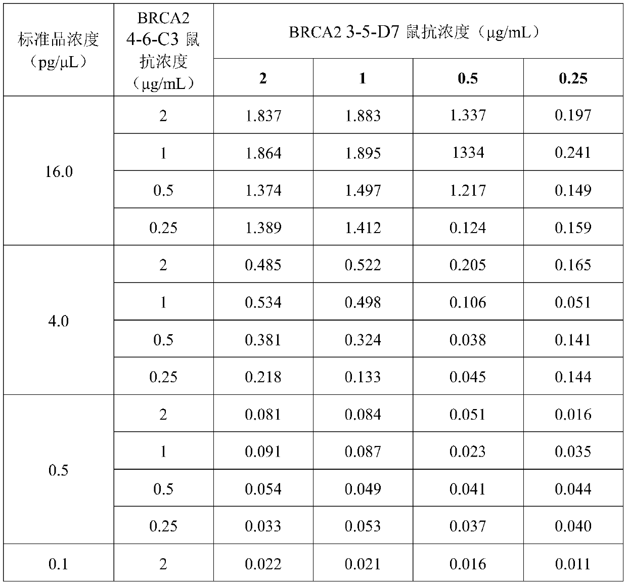 一种BRCA2蛋白酶联免疫双抗夹心试剂盒及其应用