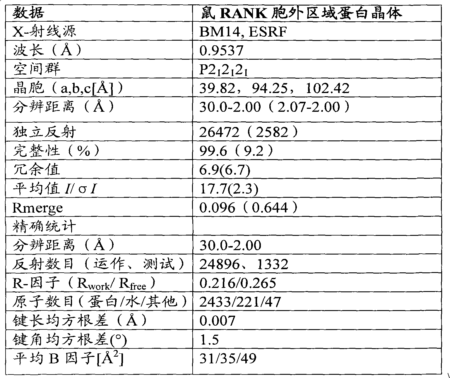 鼠RANK胞外蛋白晶体