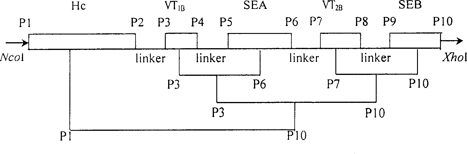 一种食物中毒菌多联融合毒素及其用途