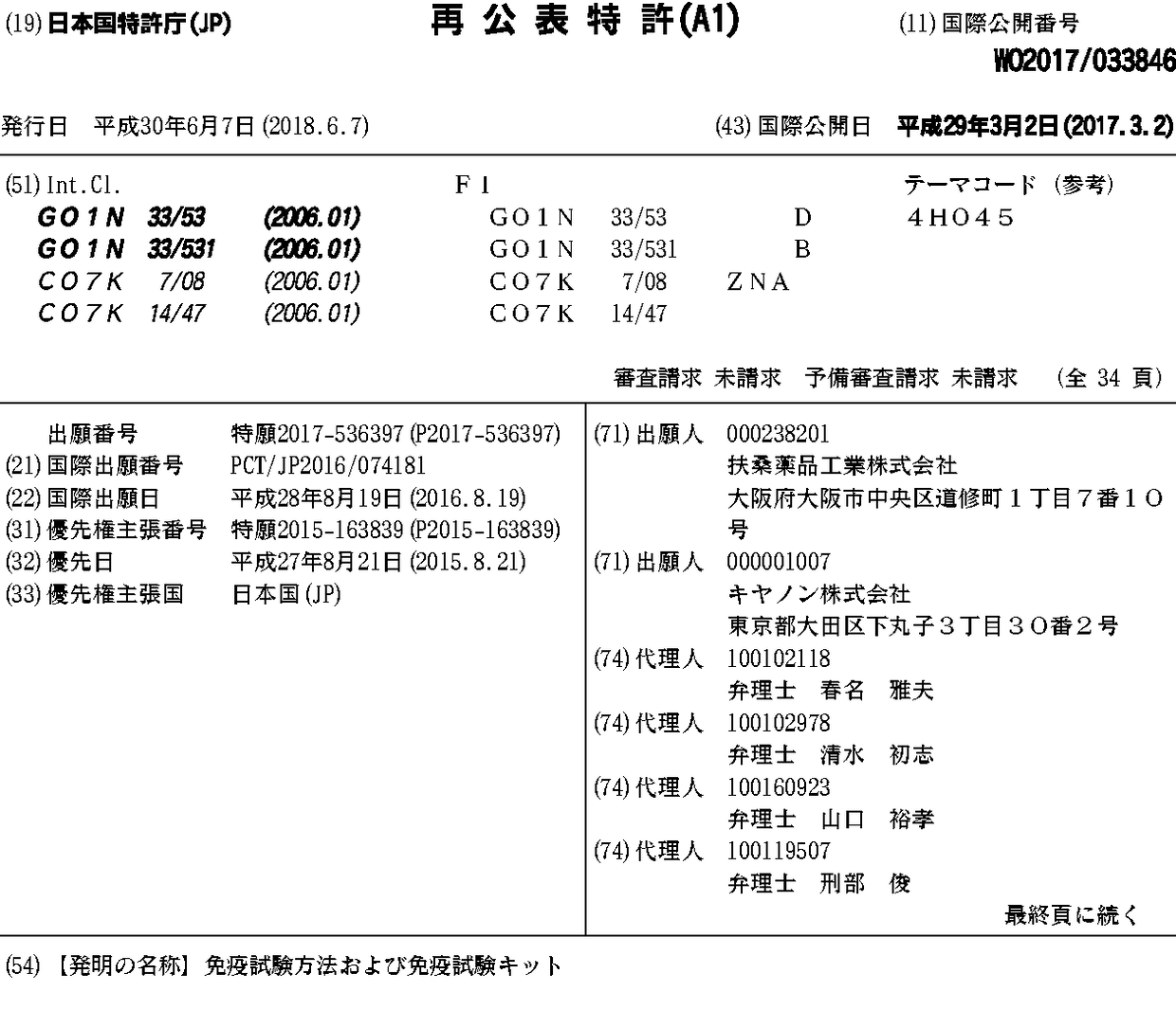 JPWO2017033846A1 | US20180246121A1 | WO2017033846A1