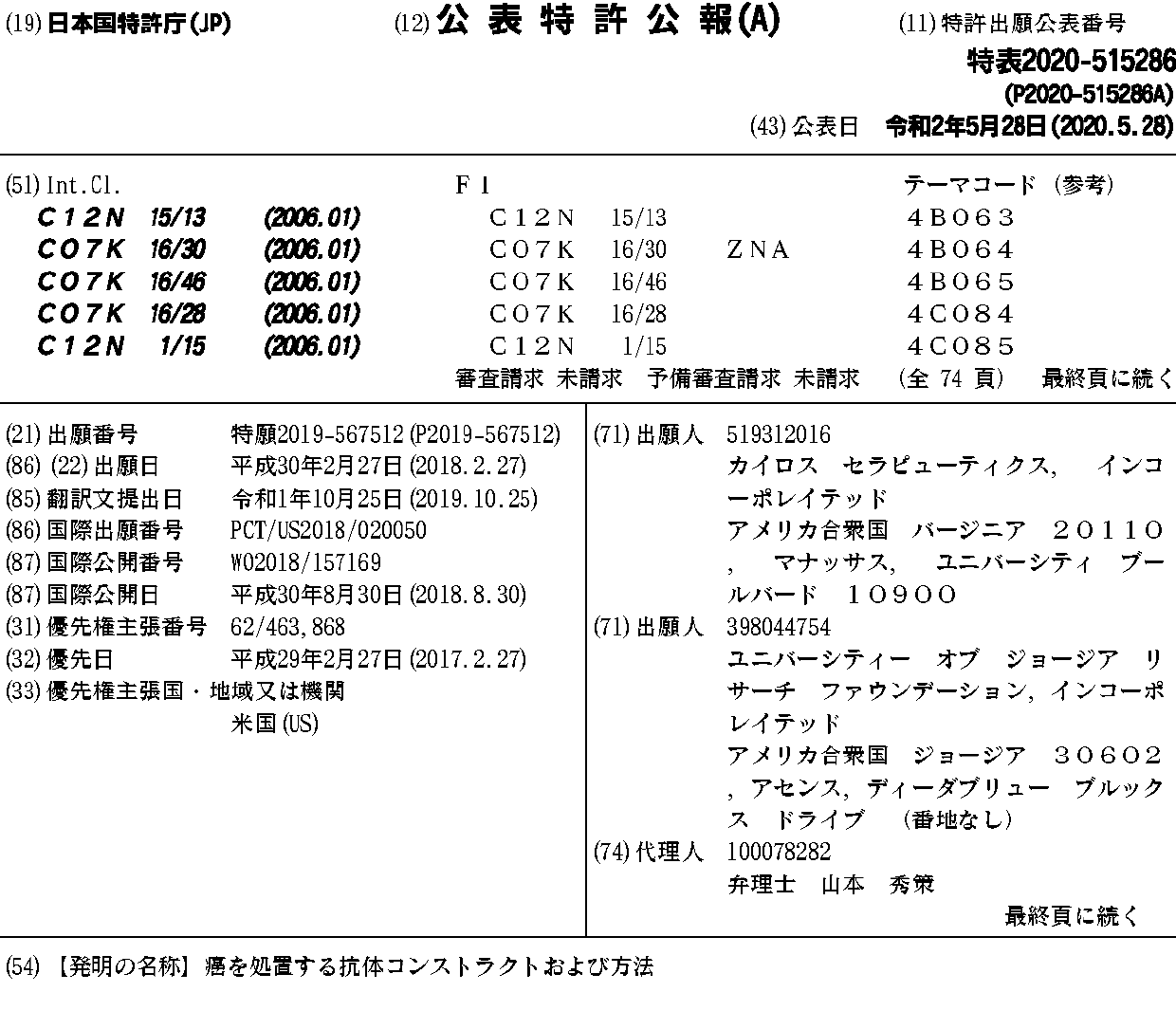 カイロス セラピューティクス, インコーポレイテッド | ユニバーシティー オブ ジョージア リサーチ ファウンデーション,インコーポレイテッド