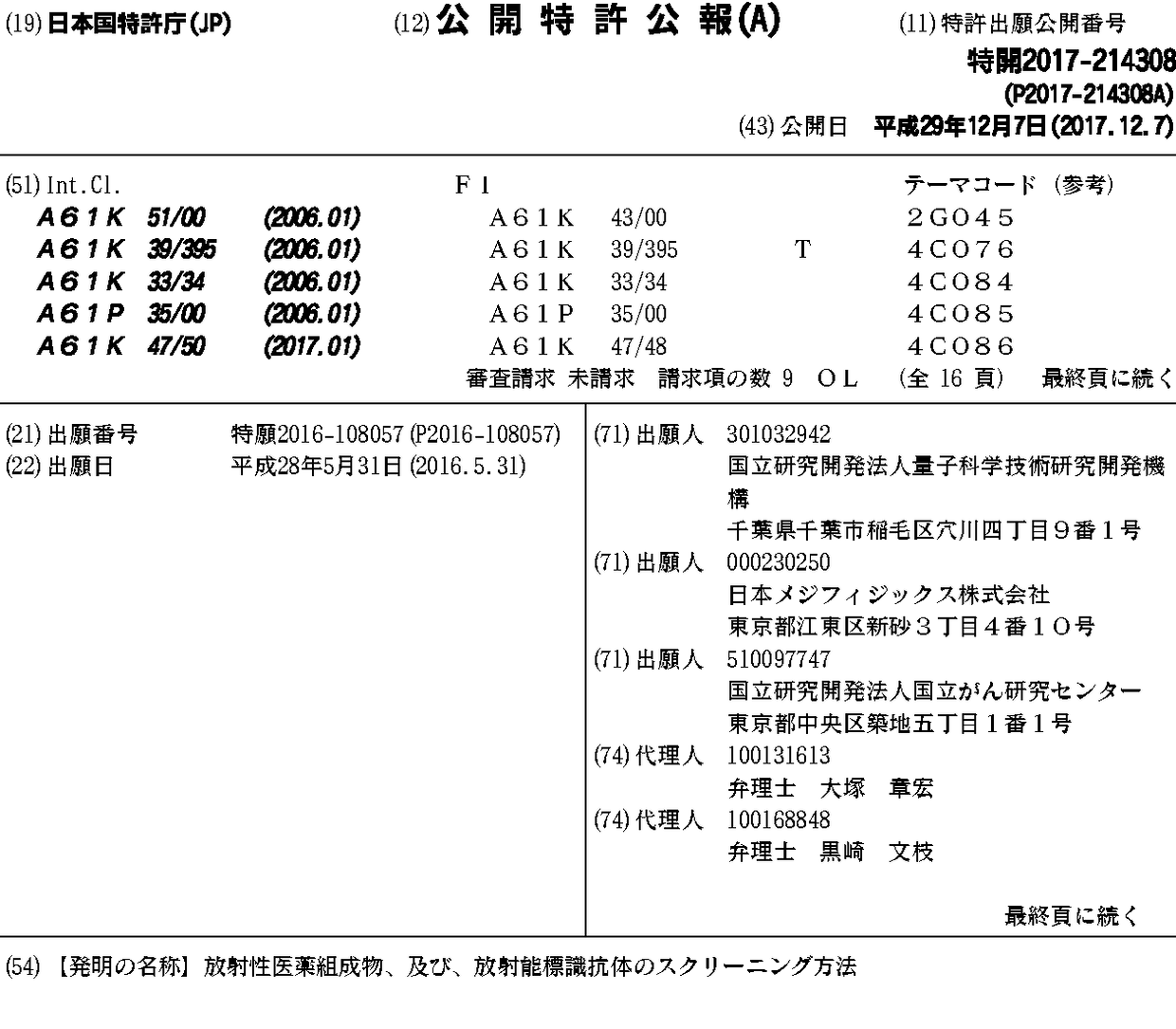 国立研究開発法人量子科学技術研究開発機構 | 日本メジフィジックス株式会社 | 国立研究開発法人国立がん研究センター