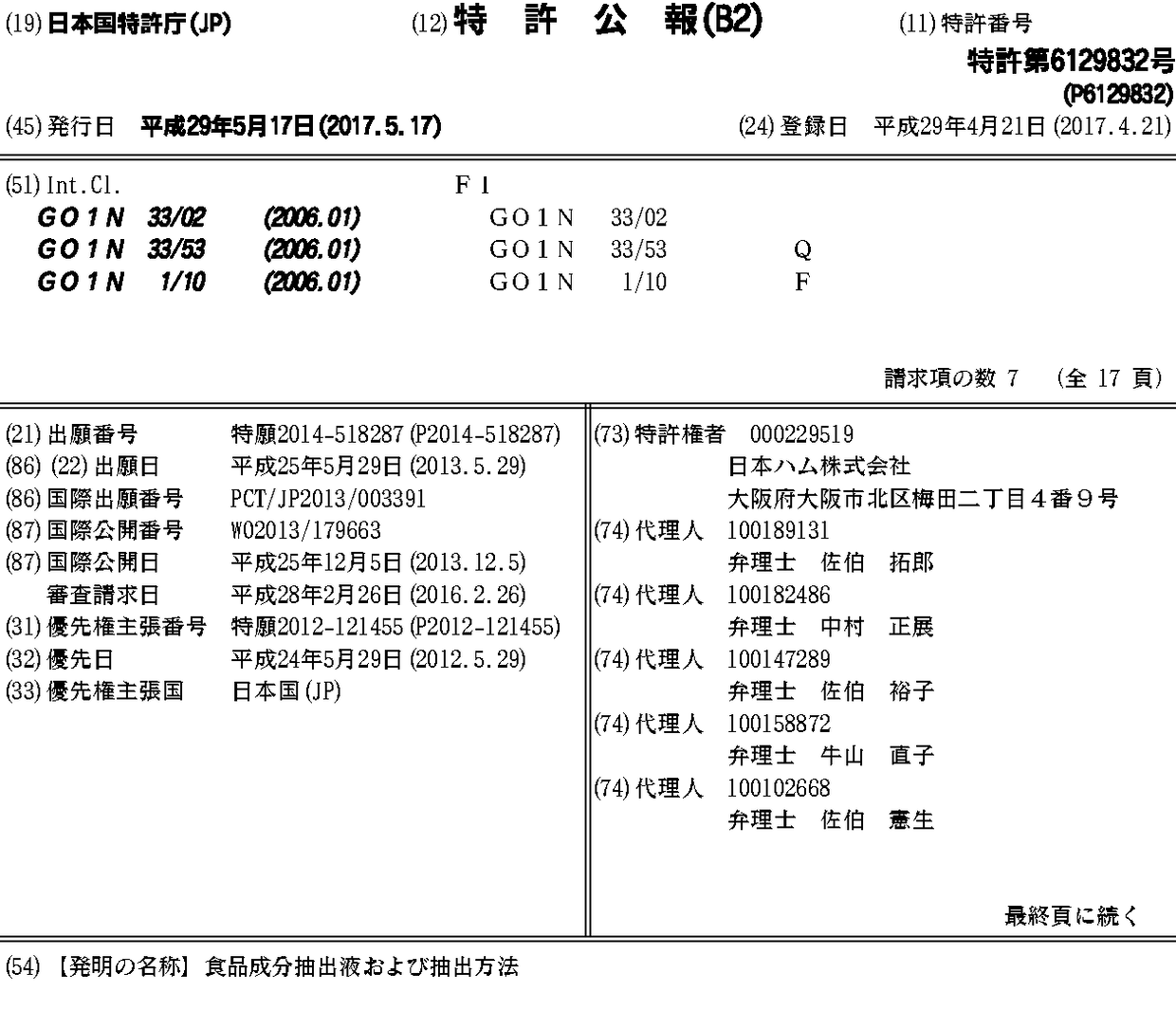 食品成分抽出液および抽出方法