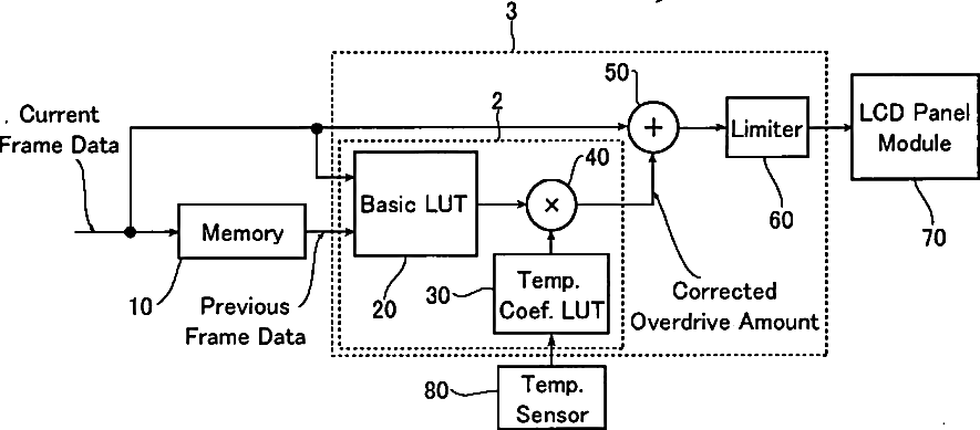 Overdrive circuit having a temperature coefficient look-up table and liquid crystal display panel driving apparatus including the same