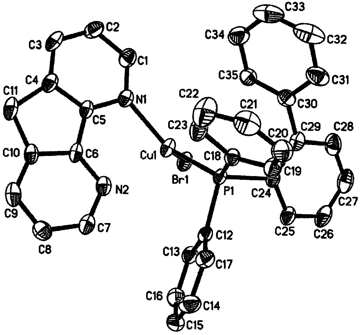 一种基于氮杂芴的CuBrNP三配位型亚铜配合物橙红色磷光材料