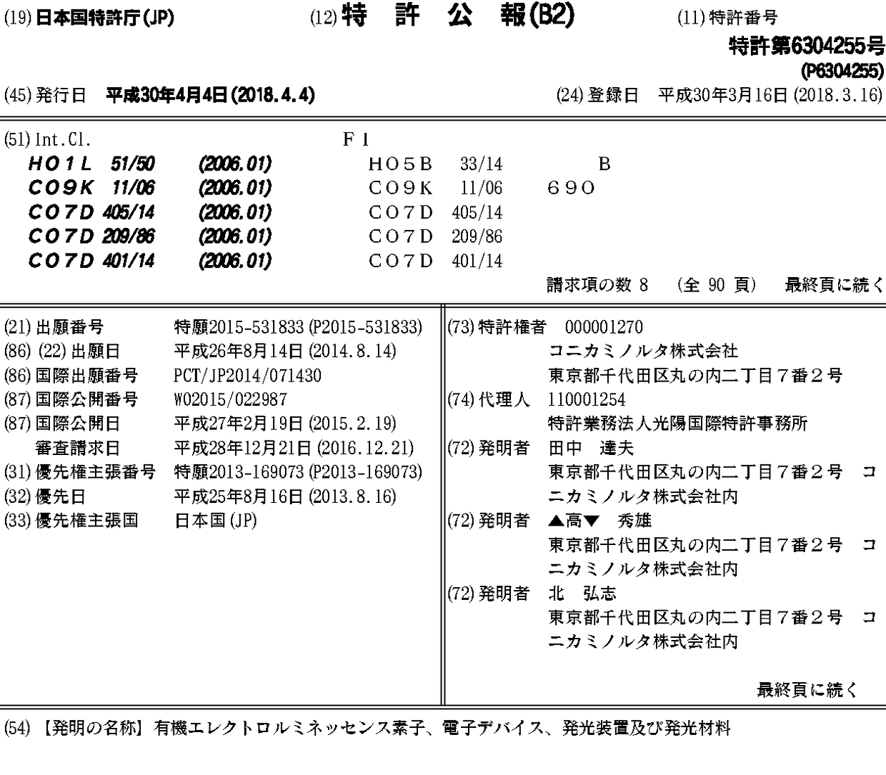 JP6304255B2 | JPWO2015022987A1 | KR101792445B1 | KR1020160030402A | US20160268516A1 | WO2015022987A1