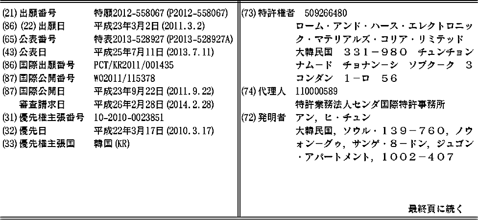 CN102933530A | JP2013528927A | JP2013528927A5 | JP5797672B2 | KR1020110104765A | TW201211058A | WO2011115378A1