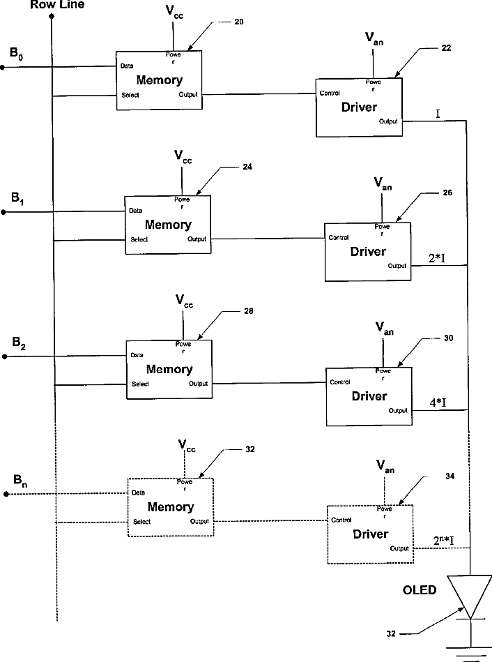 Grayscale static pixel cell for oled active matrix display