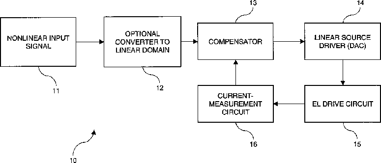 Electroluminescent display compensated analog transistor drive signal