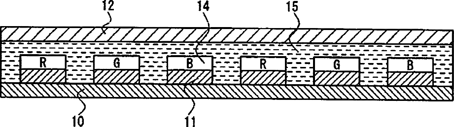 Organic EL display device having conductive color changing layers