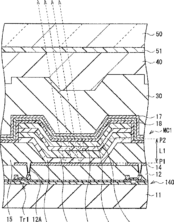 Organic electroluminescence device, display unit including the same, and method of manufacturing an organic electroluminescence device
