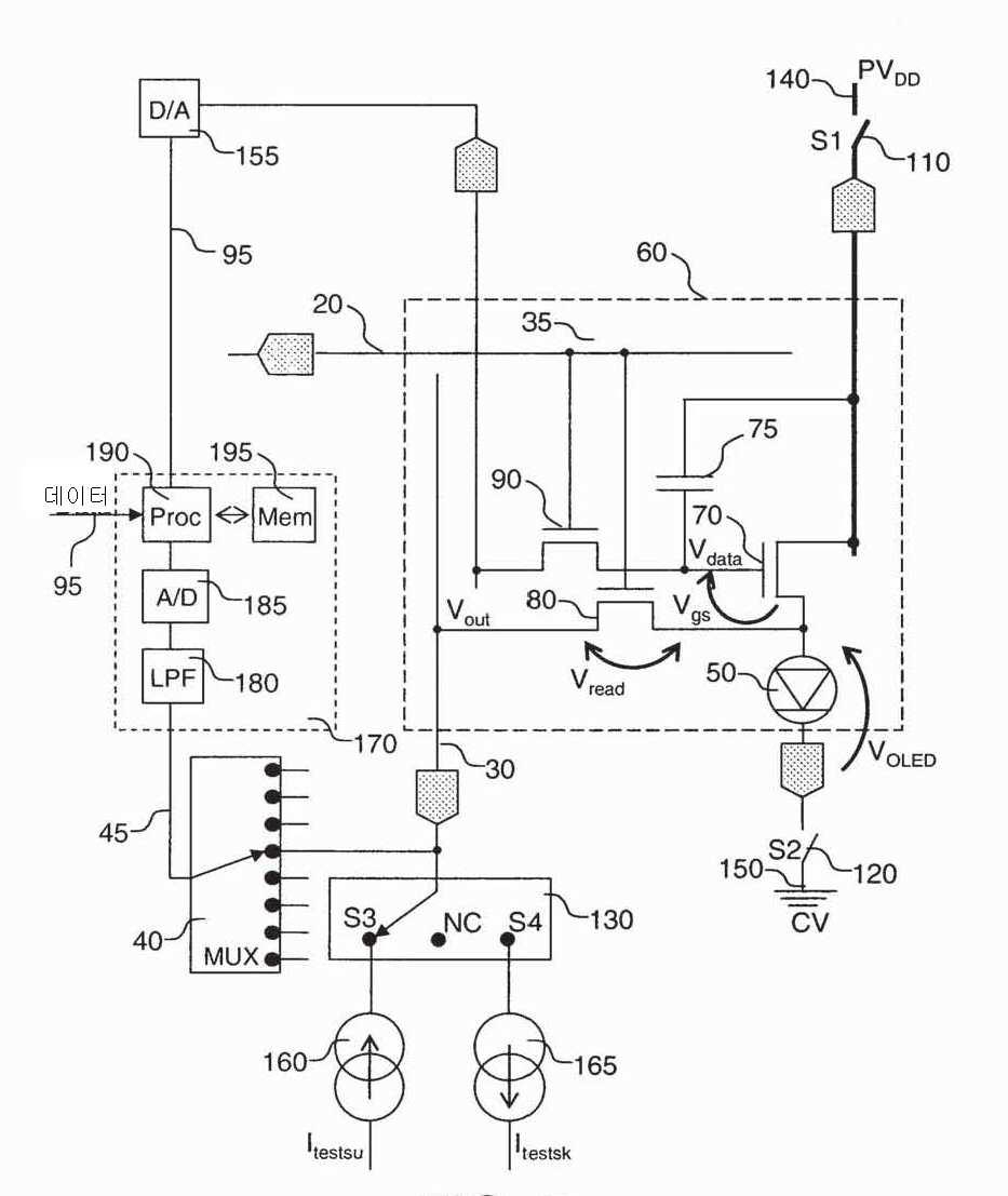 를 통해 연결된 전류싱크(165)를 리드아웃 트랜지스터에 제공하는 단계