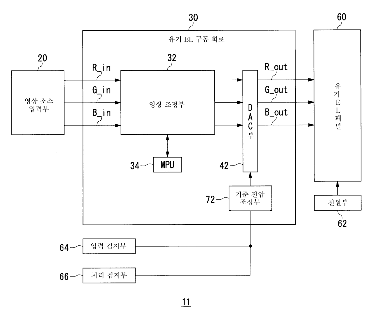표시 장치, 휴대 단말기, 및 휴대 단말기에서의 휘도 제어방법