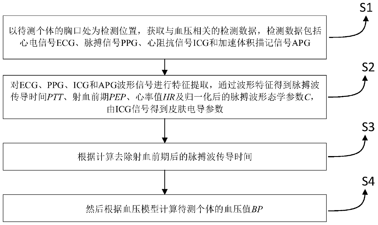 一种基于脉搏波传导时间的胸口无创血压检测方法
