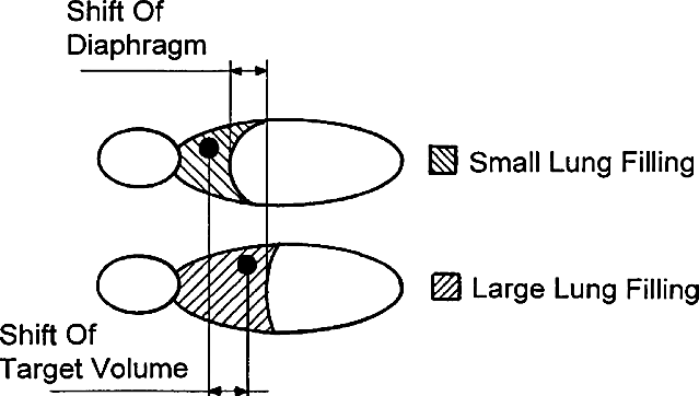 Method for determining a current lung filling extent and method for assisting radiation therapy during respiratory shifting of the radiation target