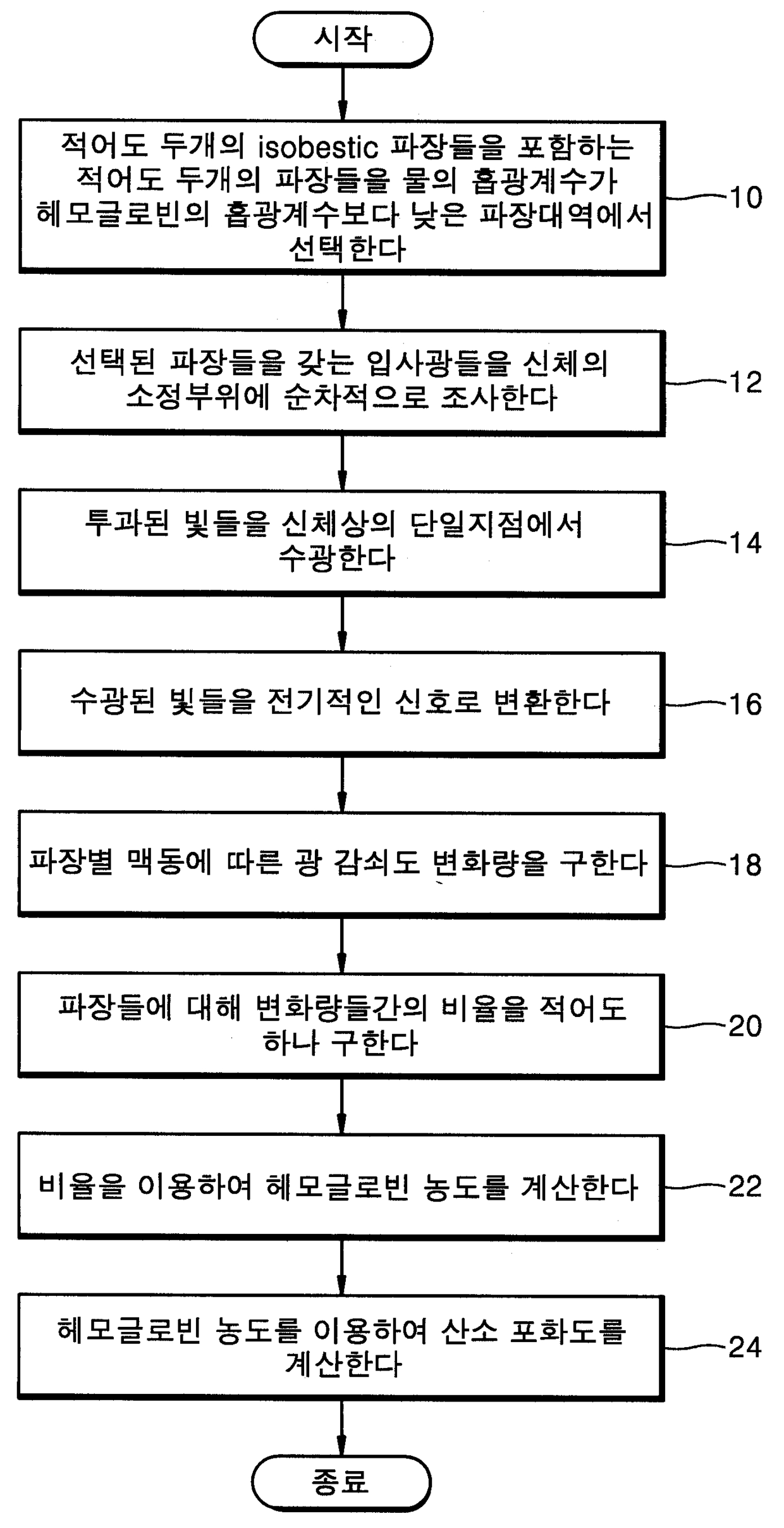 비 침습적인 헤모글로빈 농도와 산소 포화도 모니터링방법 및 장치