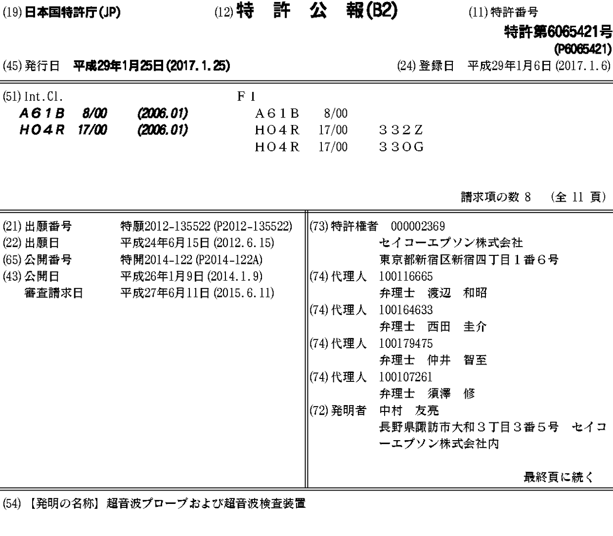 CN103512649A | CN103512649B | JP2014000122A | JP2014000122A5 | JP6065421B2 | US20130338508A1 | US20160007963A1 | US9168025 | US9456803