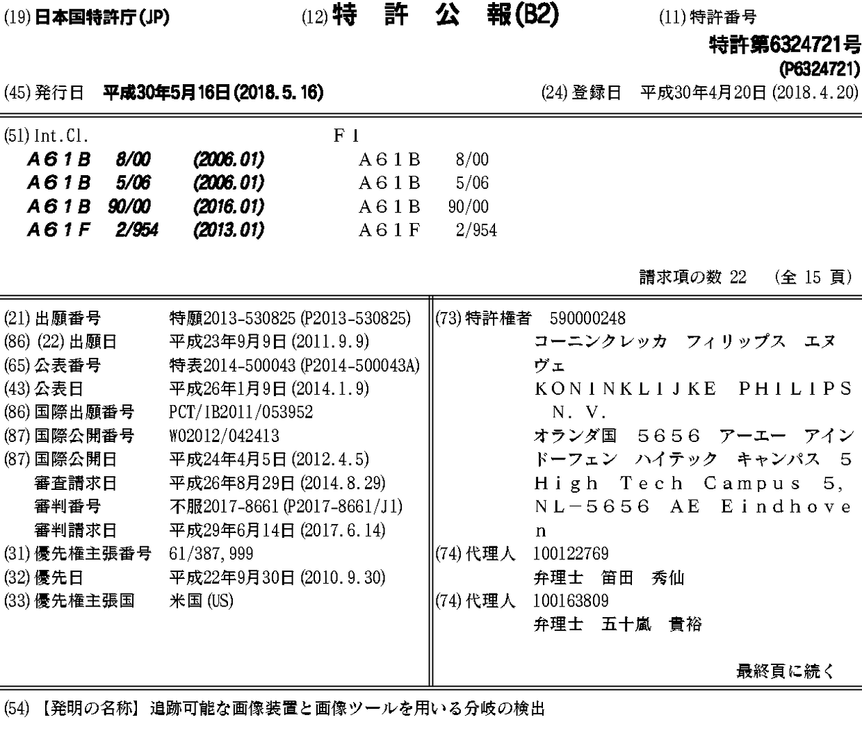 CN103118601A | CN103118601B | EP2621343A1 | JP2014500043A | JP6324721B2 | US20130303888A1 | US9724071 | WO2012042413A1