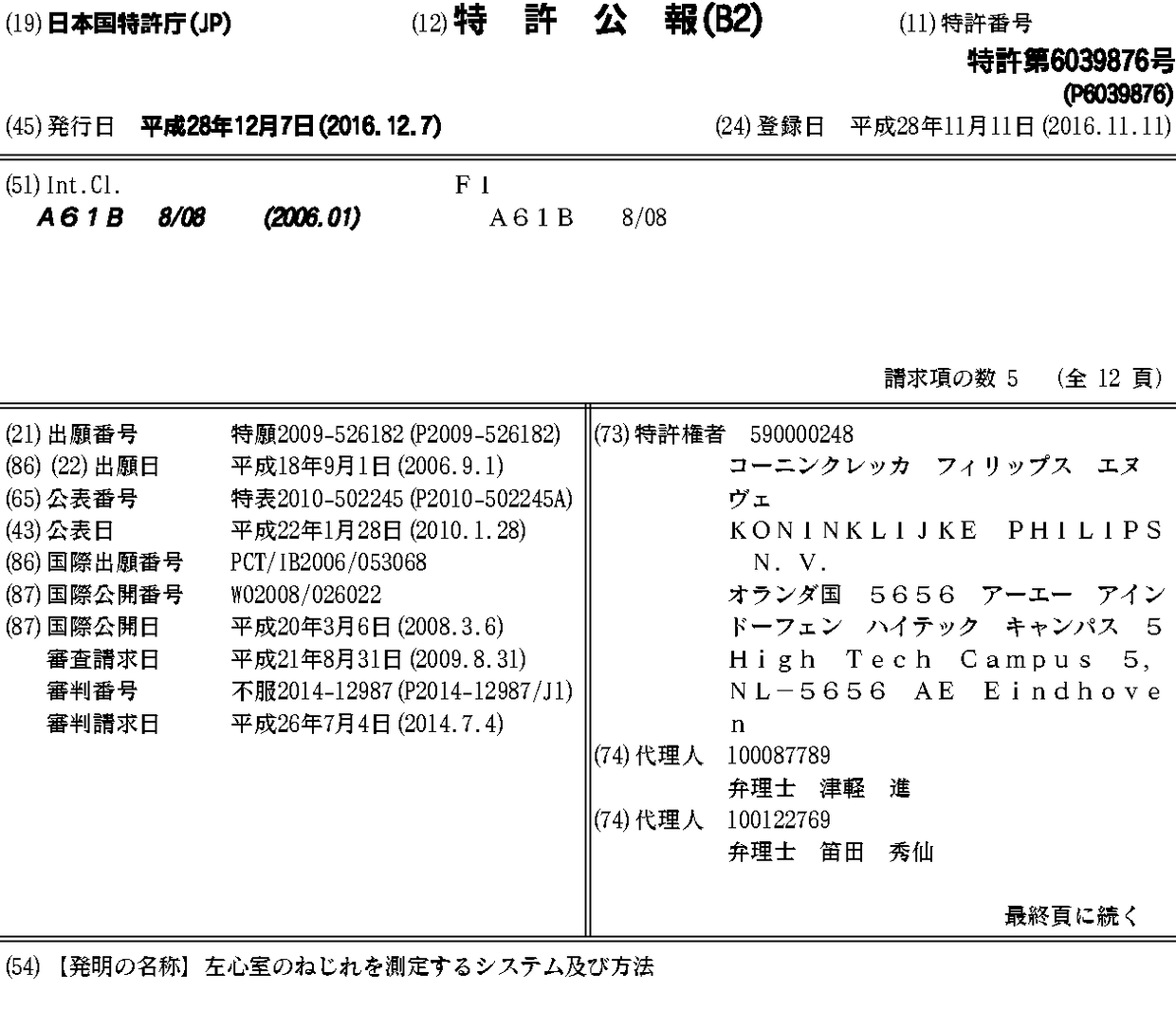 CN101505663A | CN101505663B | EP2059173A1 | EP2059173B1 | JP2010502245A | JP6039876B2 | US20080199064A1 | US8224047 | WO2008026022A1
