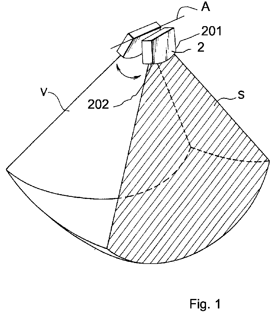Ultrasonic imaging method and probe for 3D gynecologic inspection