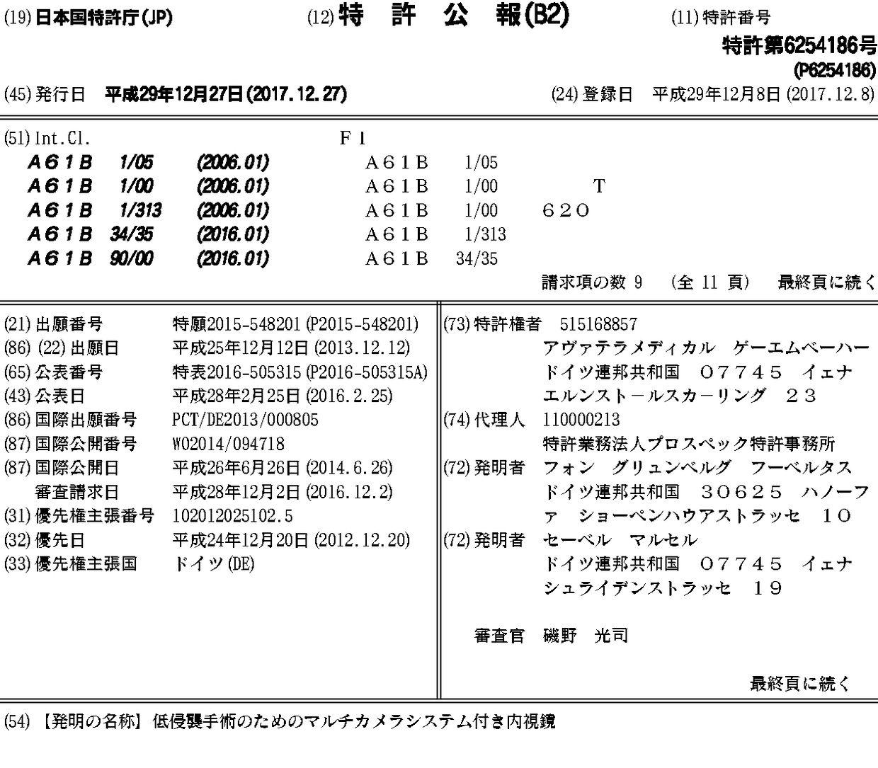CN104902797A | CN104902797B | DE102012025102A1 | EP2934279A1 | EP2934279B1 | HK1213461A | HK1213461A1 | JP2016505315A | JP6254186B2 | US20140180001A1 | US20160192827A1 | US9307894 | WO2014094718A1