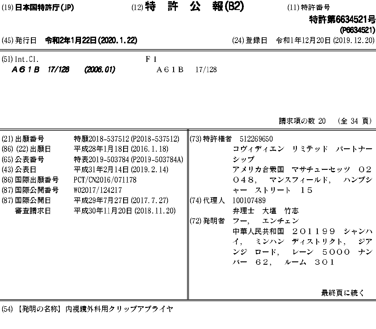 AU2016388454A1 | CA3011262A1 | CN108472027A | EP3405116A1 | EP3405116A4 | JP2019503784A | JP6634521B2 | US20190000482A1 | WO2017124217A1
