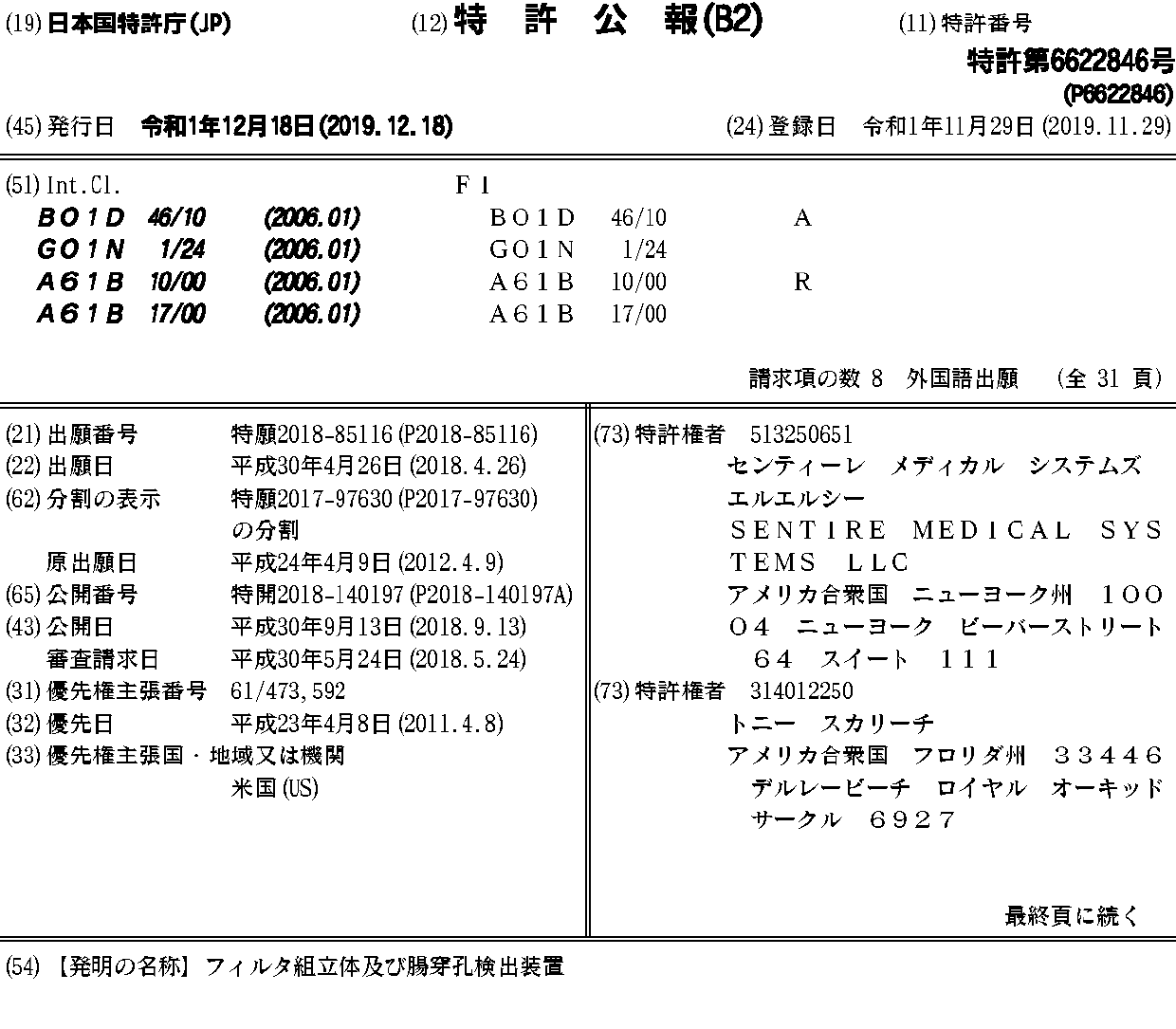 センティーレ メディカル システムズ エルエルシー | トニー スカリーチ | デイビッド レオナルド | デイビッド クラスン | バラクリシャーナ ハリダス | ロバート エム ガーフィールド サード