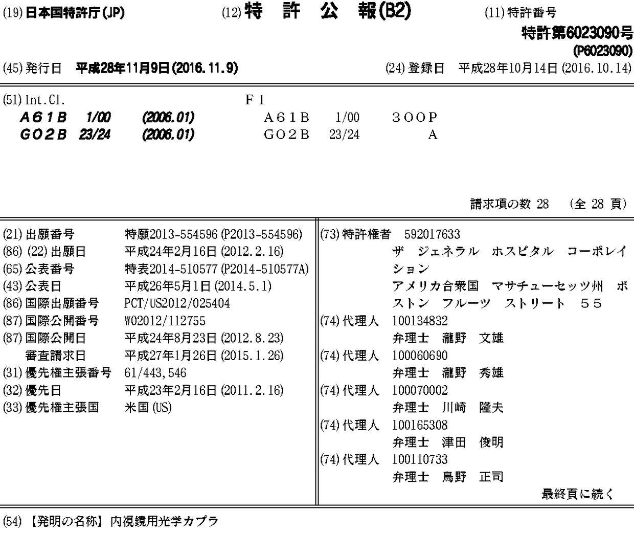 CA2863587A1 | CN103429138A | CN103429138B | CN106214110A | CN106214110B | EP2675335A2 | EP2675335A4 | HK1191833A | HK1191833A1 | HK1232108A | HK1232108A1 | JP2014510577A | JP2017006732A | JP2018079370A | JP2019162467A | JP6023090B2 | JP6283082B2 | JP6707097B2 | KR1020140022007A | KR1020190107186A | KR102022106B1 | US10506918 | US20120209074A1 | US20150065795A1 | US8905921 | WO2012112755A2 | WO2012112755A3